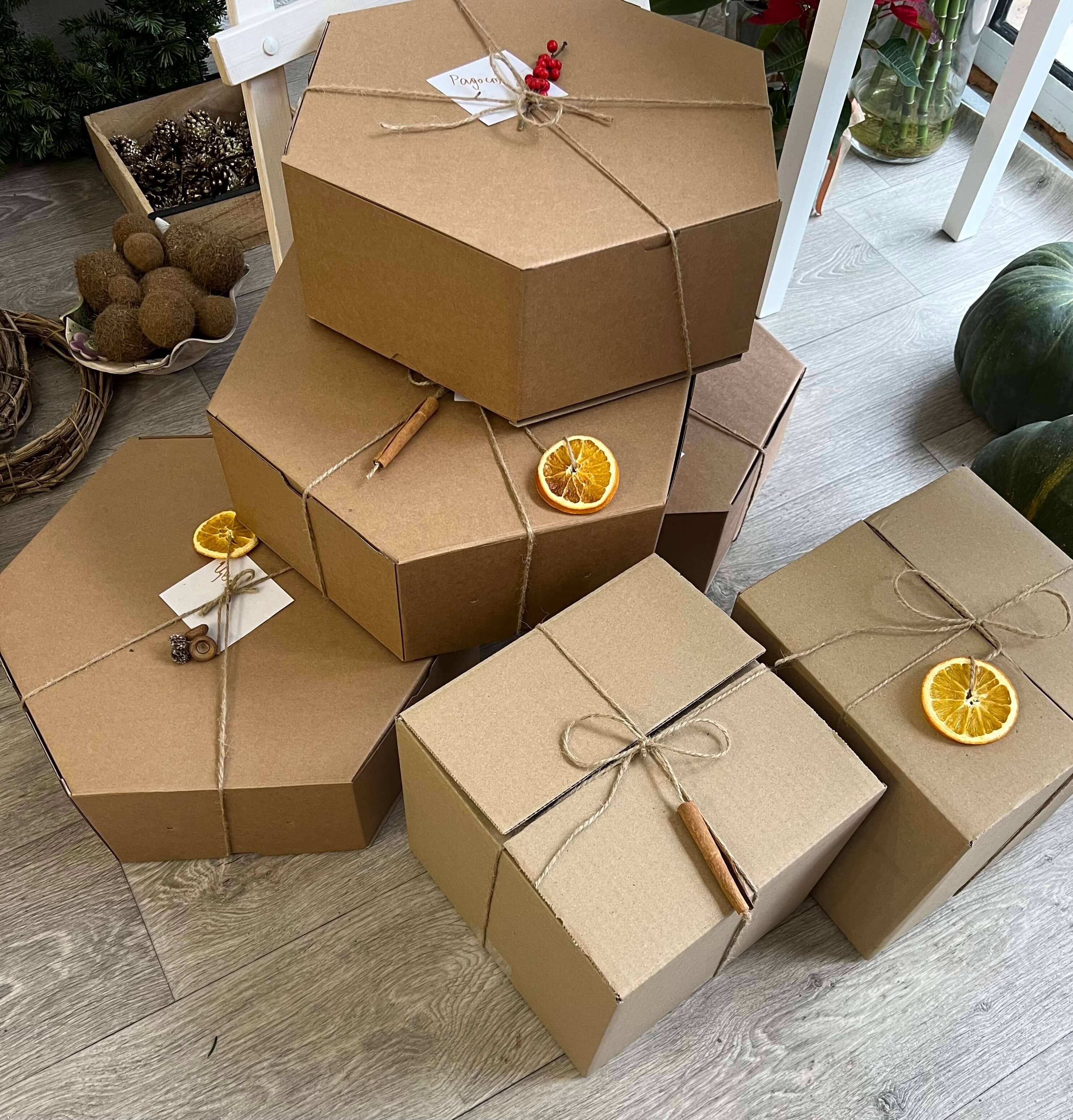 Предлагаме ефектно опаковане на венците в специално изработени крафт кутии със стикер с логото на компанията ви – цена на 1бр кутия + стикер – 5лв.